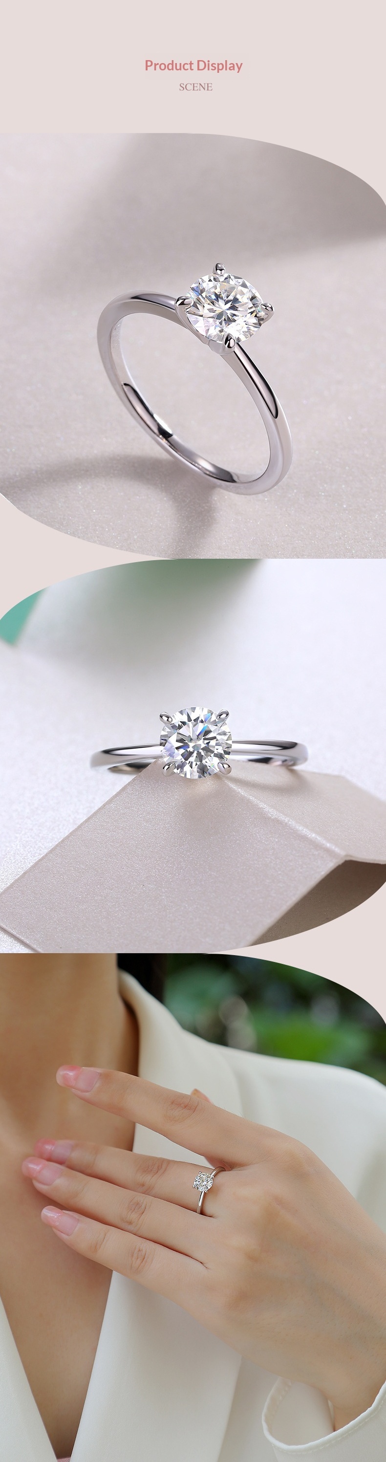 Elegant S925 sterling silver ring with 1-carat moissanite, four-prong geometric setting offering light luxury sparkle for modern women buyers style up