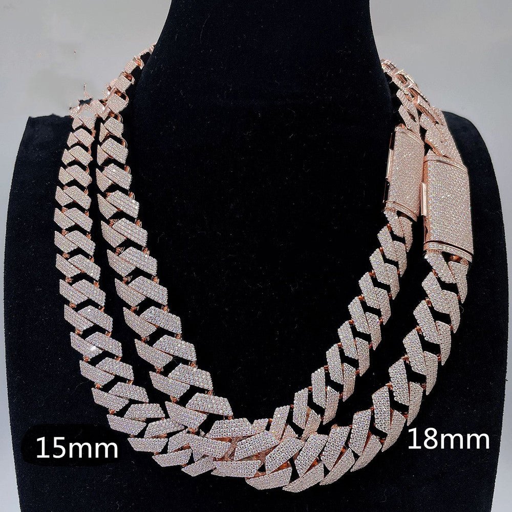 Treatment process: inlay diamond Style: unisex Chain style: Cuban chain Color: platinum, gold, rose gold Purity: 18mm+7 inch(17.78cm), 18mm+8 inch(20.32cm), 18mm+9 inch(22.86cm), 18mm+18 inch(45.72cm), 18mm+20 inch(50.8cm), 18mm+22 inch(55.88cm), 18mm+24 inch(60.96cm)